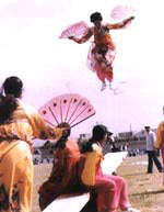 民间跳板长5.5米,宽4 0厘米左右,厚5至6厘米。跳板中间的下面立板垫,高3 0厘米。比赛时有专人守护板垫,防止跳板掉下来。站在跳板两端上的姑娘轮番连续起跳,逐渐将对方弹送得更高。在身体腾空时能表演出惊险动作者最受欢迎,如剪式跳、旋转跳、空翻跳,甚至跳藤圈,做造型,舞花环、挥彩带等。灵巧优美、五彩纷呈,令人眼花缭乱,惊叹赞赏。