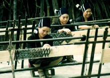 纺织工艺 悠久的纺织历史 黎族家庭手工业中,以纺织最为著称,且有着悠久的历史。早在唐宋时期,黎族的棉纺织技术就优于中原。织出的黎锦、黎单闻名于世。他们利用简单的纺织工具,有轧花机、弹棉弓、捻线纺轮、脚踏纺车、绕线架、理经架、撷染架、踞织机等多种纺织工具。从轧棉、弹棉、纺线、染色、理经、织布、刺绣,直到生产出色彩斑斓的锦、被、单、筒裙、花带等,已形成了一整套系统的生产工艺。而且至今,著名的“崖州被”和“双面绣”,以其技术精巧细密,花色艳丽又富于特色而驰名。