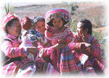 我们以主要黔东方言苗族的织锦为例,说说苗锦的工艺特点和特色。 黔东方言苗族妇女的织锦,比较普遍,也较精致,宽者尺余,窄仅几分,也有宽一寸至七八寸的。织锦方法有挑织、机织、编织三种。挑织都属宽锦,机织和编织只用于锦带。挑织宽锦的地区不多,而织锦带则较普遍。织锦花纹和配色,各地略有区别。