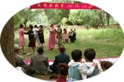 婚礼别具特色 塔塔尔族的婚礼别具特色,与众不同的是,塔塔尔族的婚礼不象其他的民族那样在男方家举行,而是在女方家举行。在婚礼的前几天,男方要把为新娘制作的服装、家具、陈设以及婚礼上食用的物品全部送到女方家去。结婚这天,身着新婚服的新郎在伴郎及亲朋好友的陪同下,坐上马车,青年人拉着手风琴,兴致勃勃地唱起流行的“几尔”(欢乐的塔塔尔流行歌曲,曲子固定,词即兴编唱),有的吹口哨,有的呼喊,一路歌声琴声不断,呐喊助兴声连天,以此来增添欢乐气氛。