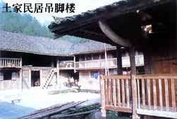 | 土家族的传统民居主要有茅草屋、土砖瓦屋、木架板壁屋、吊脚楼四种类型, 除此之外还有石板屋和岩洞。民居结构分为正屋、厢房和司檐:正屋一般为三间,