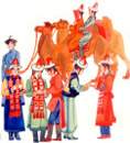 唱。内容一种是互相祝贺、一种是娘家要求婆婆爱护、体 贴姑娘,婆家则夸跃自家如何好,要娘家尽管放心等等。也 有俏皮的歌手专唱那些富于幽默感以至带有挑逗的内容。